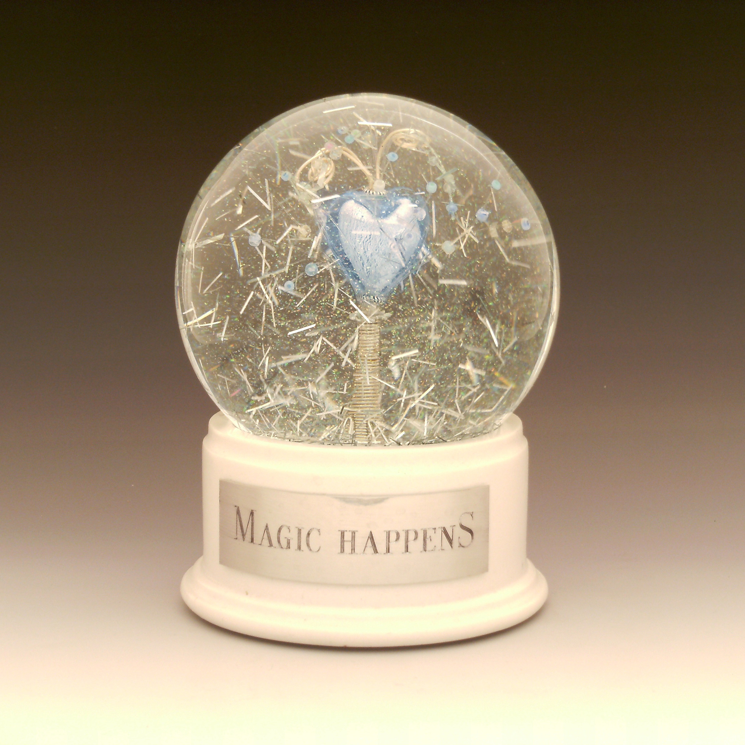 I was inspired by someone with a true blue heart, and can only say that when you shake this globe, and the world fills with light, and laughter, and hope, for a moment you will believe.