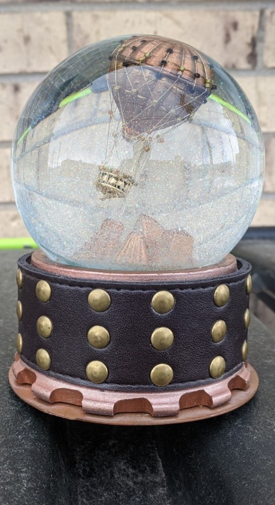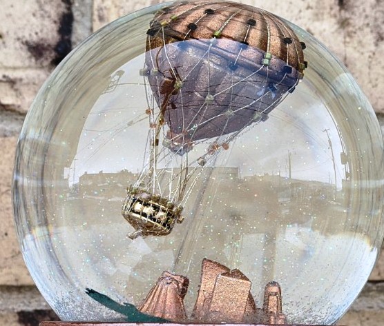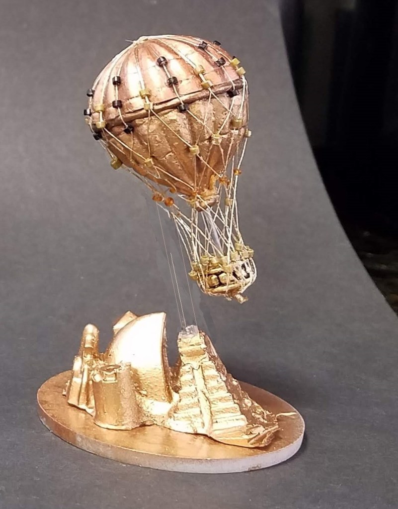 This tiny balloon with intricate lacing is less than 2 inches tall. Hovering aloft above the rooftops of the sleeping town below.