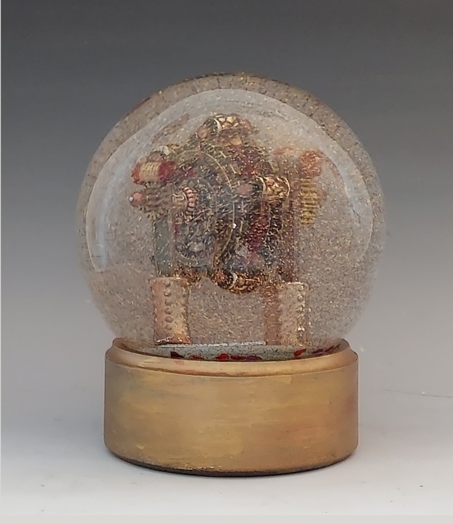 A dusting of gold and iridescent sparkles will swirl through the sculpture when the globe is shaken tiny red confetti hearts dance in the liquid.