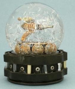 A sweet little idea, with a variety of small metal animals, each perched atop an unseen clear support, at different heights, so when viewed inside the snow globe, it would appear to be a carousel with no mechanical support. The invisible carousel. Charming. Dripping with charm.